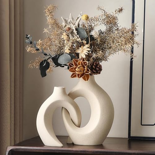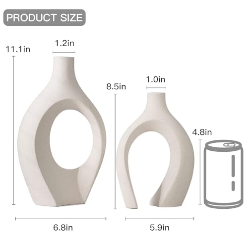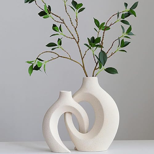 Meissfunny - فازات سيراميك بيضاء من ميس فاني - مجموعة من فازتين حديثتين مجوفتين مستديرتين لديكور المنزل، فازات بوهو للديكور الاسكندنافي البسيط، مناسبة لحفلات الزفاف وغرفة الطعام وغرفة المعيشة والمدخل (A)