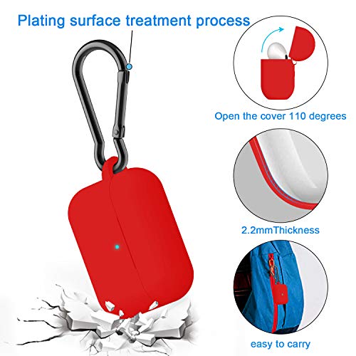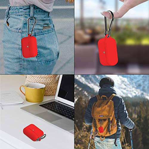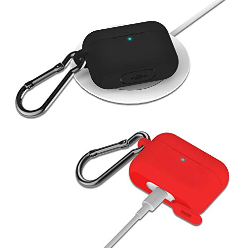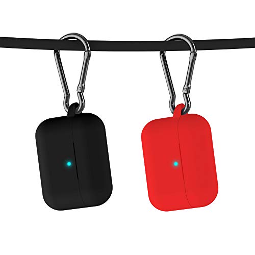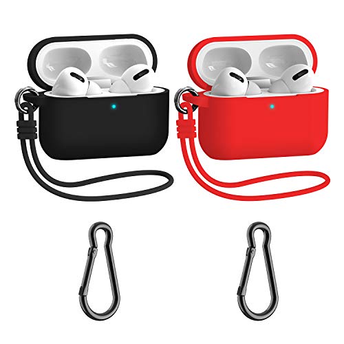 meiyasy - حافظة حماية متوافقة مع سماعات آبل ايربودز برو، مع حلقة تعليق، اكسسوارات حافظة حماية من السيليكون لسماعات ايربودز برو (لون أسود وأحمر) عبوة من قطعتين