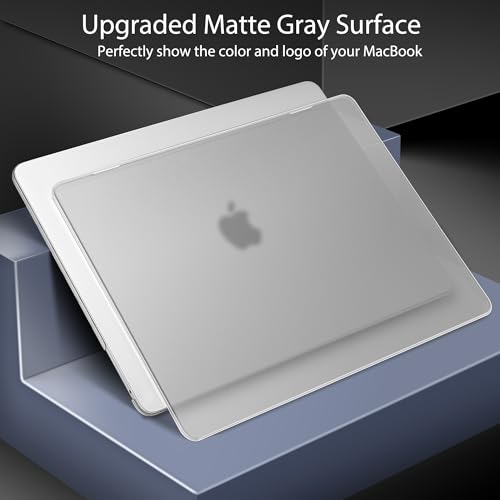 Mektron - مكترون حافظة مطورة لجهاز ماك بوك برو 13 انش اصدار 2022 2021 2020 A2338 M2 M1 A2289 A2251، غطاء حماية صلب شفاف بلوري مع كيبورد، رمادي مات شفاف، بولي كربونات