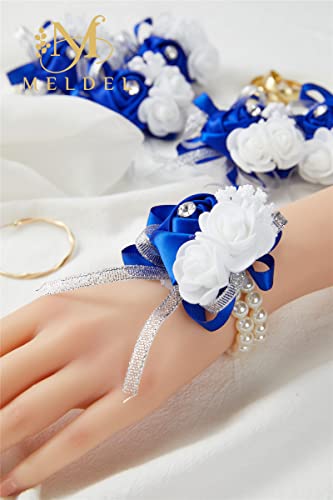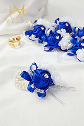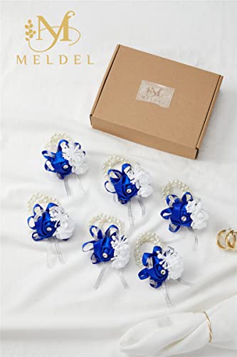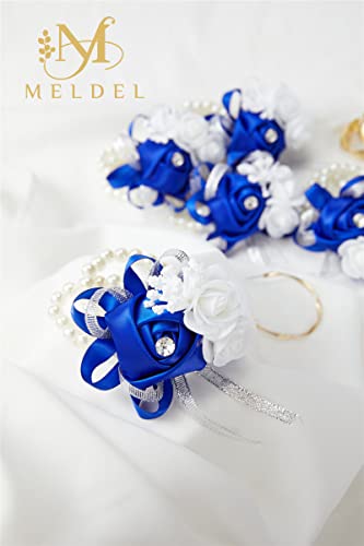 Meldel - ميلدل مجموعة من 6 قطع كورسات المعصم بتصميم زهور لحفلات الزفاف والحفلات الراقصة ووصيفات العروس زهرة يد وردية والذكرى السنوية وحفلات العشاء العودة للوطن ازرق