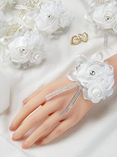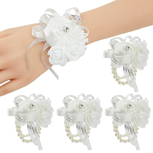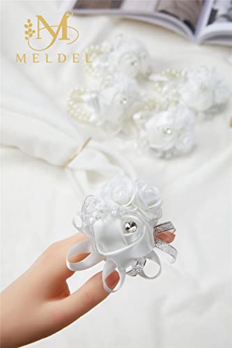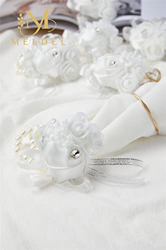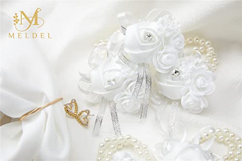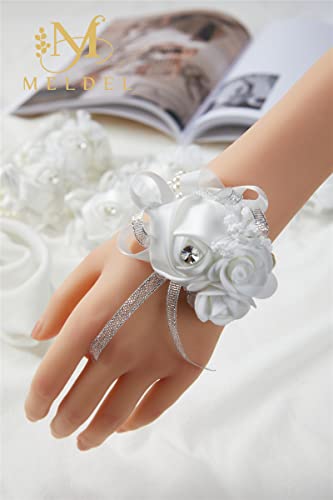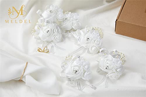 Meldel - ميلدل كورسات معصم لحفلات الزفاف مجموعة من 4 قطع كورسيج ابيض والدة العروس والعريس زهور حفلات التخرج زهرة المعصم اليد