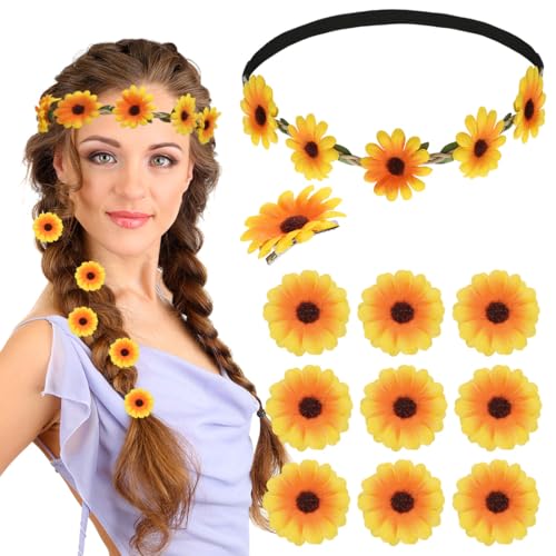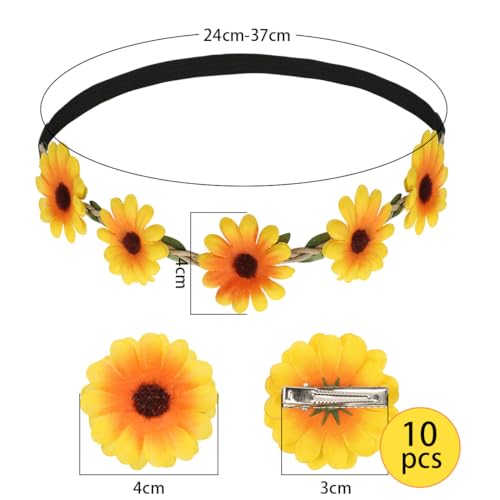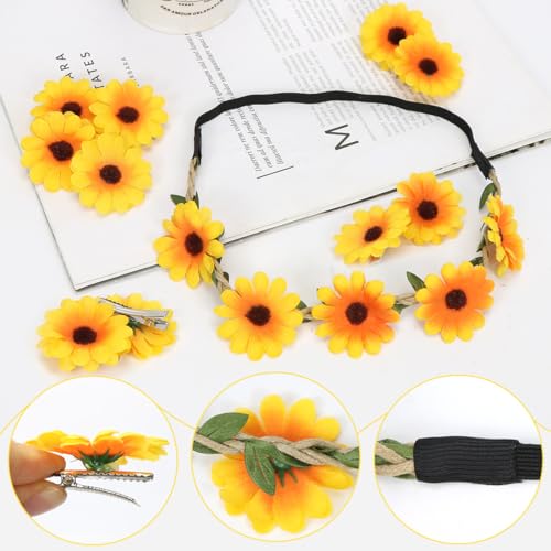 Meleager - طوق شعر بتصميم زهرة عباد الشمس من ميليجر، شريط راس مع مشابك شعر، مجموعة اكسسوارات شعر عباد الشمس للنساء، الكرنفالات، العروس، العطلات بجانب البحر، الزفاف، الحفلات