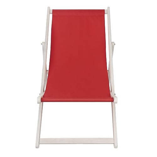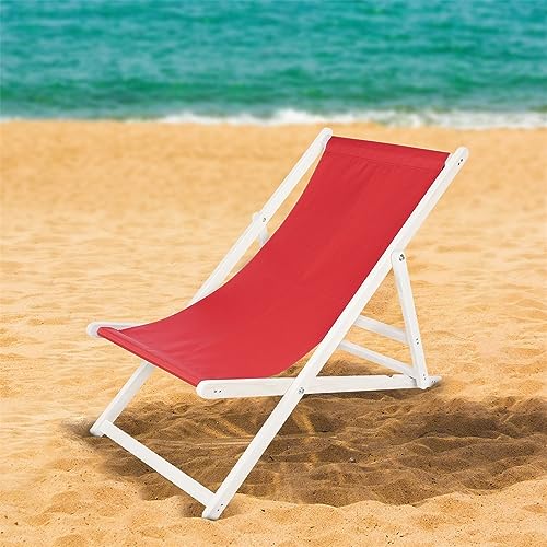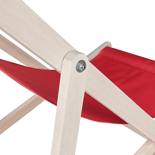 Melko - كرسي عصري من ميلكو للشاطئ والحديقة والتخييم قابل للطي والتعديل، مصنوع من خشب الصنوبر والبوليستر، باللون الأحمر