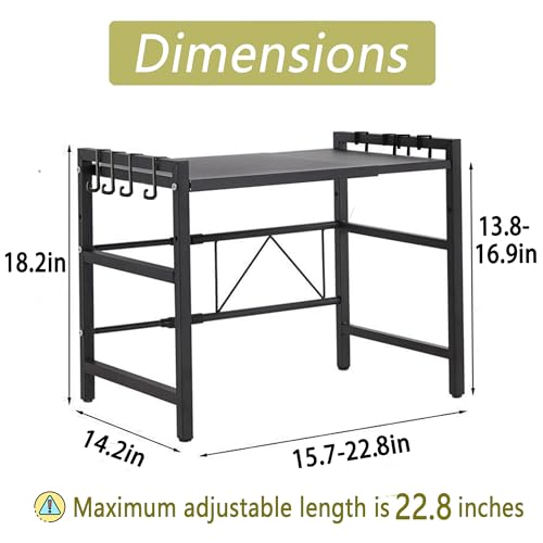 Mellingcasa - رف فرن ميكروويف من ميلينجكاسا، حامل ميكروويف قابل للتوسيع من طبقتين لتخزين ادوات المطبخ وادوات المائدة، رف من الستيل الكربوني فوق سطح المكتب مع 6 خطافات (اسود)