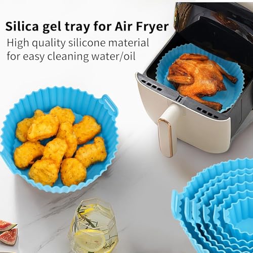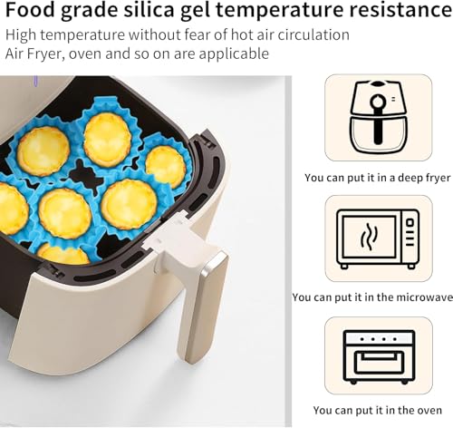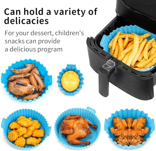 MELLOVIN - وعاء سيليكون للمقلاة الهوائية مطور قابل لإعادة الاستخدام والغسل، بمقابض جانبية، سهل التنظيف، وعاء سيليكون للمقلاة الهوائية الدائرية والفرن، سيليكون آمن غذائيًا ومقاوم للحرارة من ميلوفين- 6 قطع