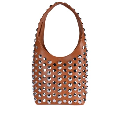 Melouk - شنطة كتف مزينة بفصوص من ميلوك - لون هافان
