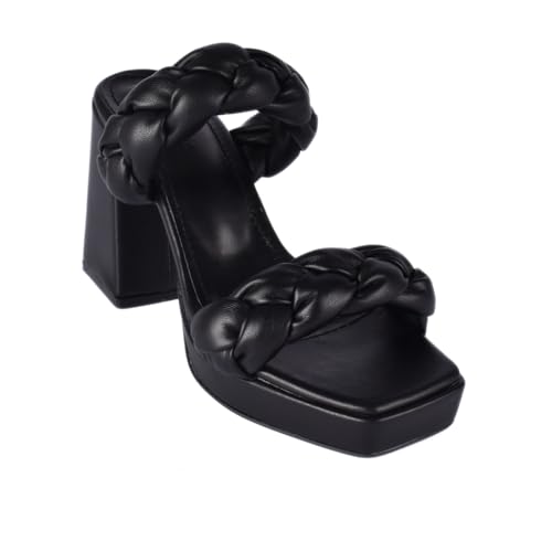 Melouk - womens Braided Block Heel Slipper-Black Heeled Sandal
