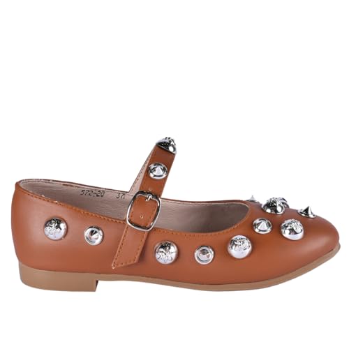 Melouk - Womens Loafer Flat Studded Throat Slip On Leather Flats - Havan
