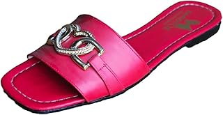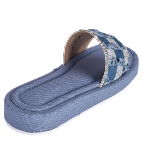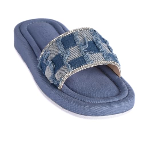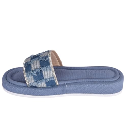 Melouk - womens Textured Slide with Crystal Trim-Blue Flat Sandal