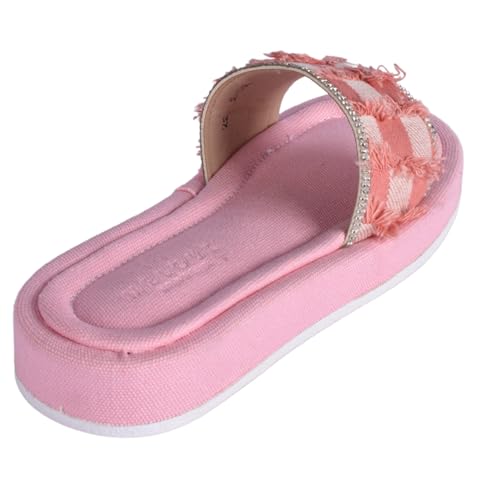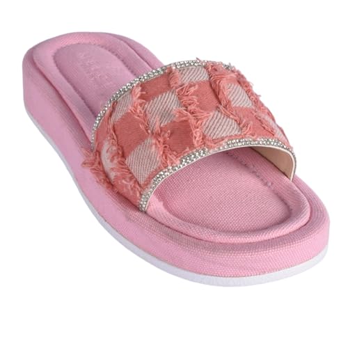 Melouk - womens Textured Slide with Crystal Trim-Pink Flat Sandal