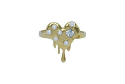 Generic - خاتم مفتوح من الستانلس ستيل بتصميم قلب ذائب - ذهبي