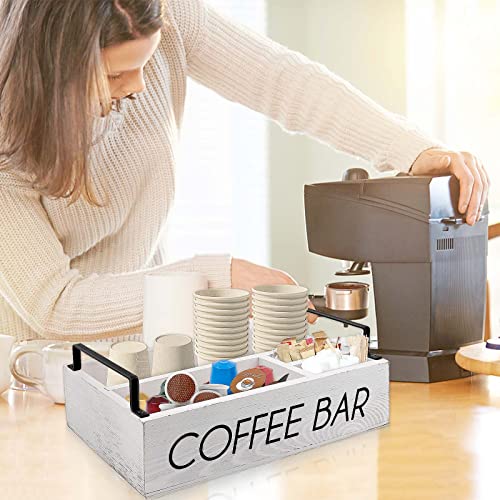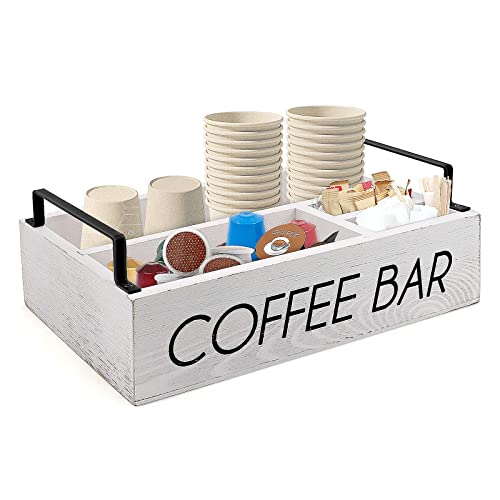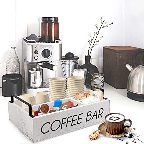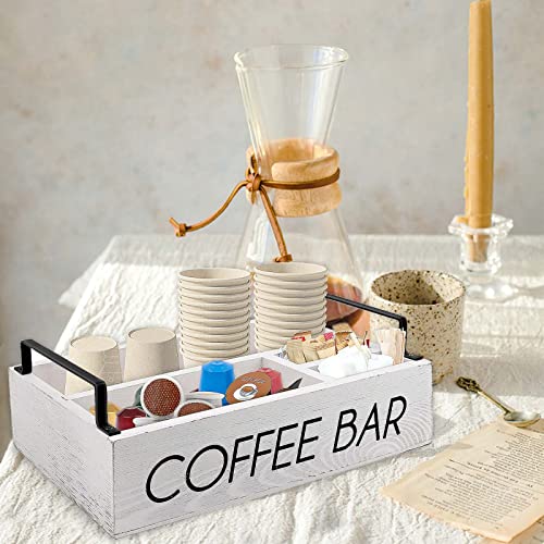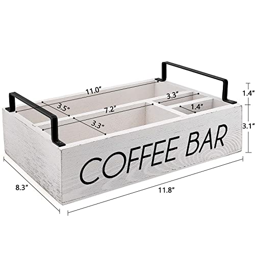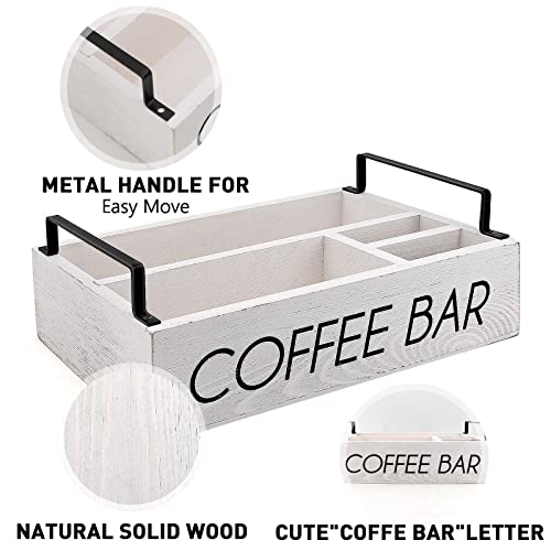 Meltset M - منظم منصة إعدد القهوة من ميلتسيت، منظم ملحقات طاولة القهوة، منظم خشبي لتزيين منصة القهوة، صندوق تخزين حامل كبسولات القهوة، سلة تخزين للسكر والشاي والإسبريسو والأكواب (لون أبيض)