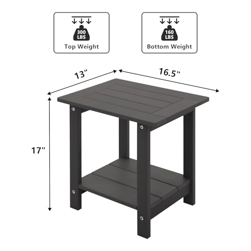 - 【تصميم تخزين مزدوج】: تتميز طاولة اديرونداك الجانبية بتصميم تخزين مزدوج عملي، مع مساحة تخزين على كل من المستويين العلوي والسفلي. يمكن للسطح العلوي حمل ما يصل إلى 300 باوند ويمكن للسطح السفلي حمل ما يصل إلى 160 باوند. إنه خيار ممتاز للاستخدام مع كرسي ميلوفيسي adirondack.