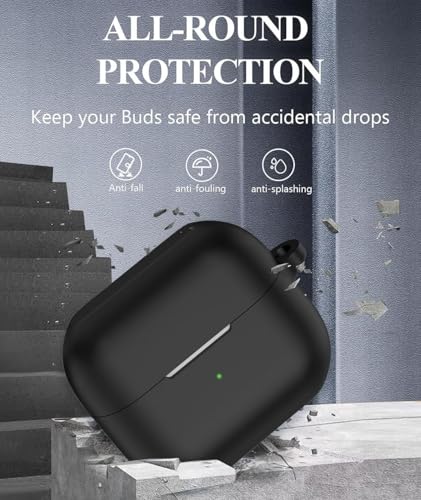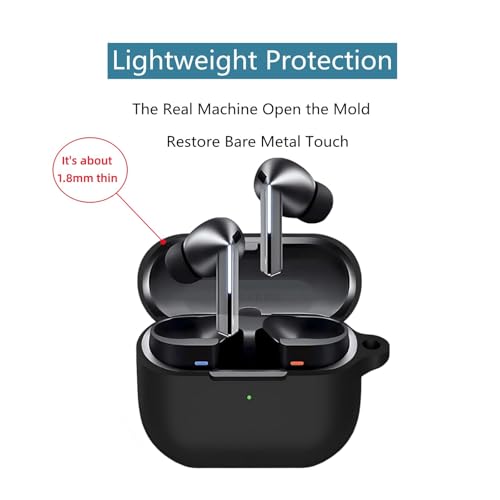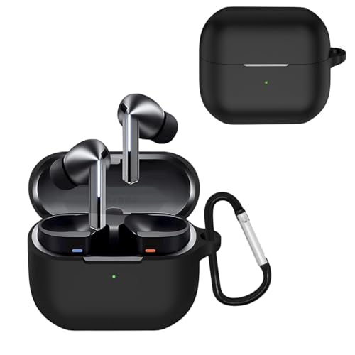 MEMELOKA - علبة حماية سيليكون ناعم مضاد للصدمات مع حلقة مفاتيح لسماعات سامسونج جالاكسي بودز 3 وجالاكسي بودز 3 برو من ميميلوكا - أسود