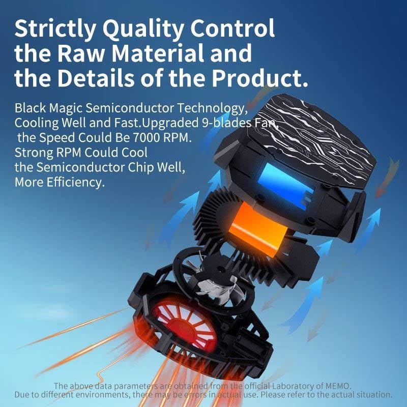 - تبريد فائق السرعة: يمكن لمبرد الهاتف ليجانسينغ أن يبرد عند تشغيله، لذلك لن تضطر إلى الانتظار. 9 مراوح تبريد محسنة ومطورة على شكل جناح توفر قدرة تبريد فورية. يمكن أن يساعد في تقليل استهلاك بطارية الهاتف أو إيقاف التشغيل التلقائي بسبب ارتفاع درجة الحرارة وتحسين أداء الهاتف وإطالة عمر البطارية.