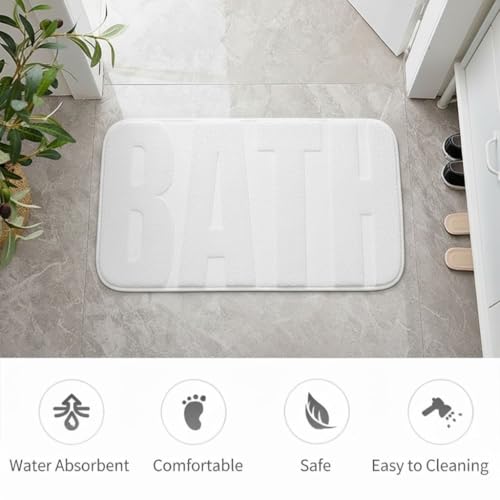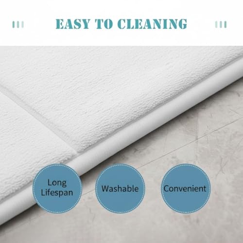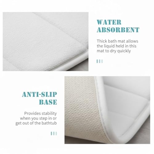 Generic - دواسة حمام ميموري فوم مانعة للانزلاق مقاس ٧٥ × ٤٥ سم – ناعمة وسريعة الامتصاص وسهلة التنظيف (ابيض)