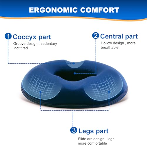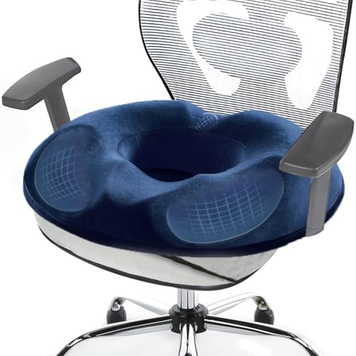 BLYPHOO - وسادة مقعد من الميموري فوم: وسادة تدليك على شكل دونات للبواسير، لراحة الورك وتمارين اليوجا، وسادة مقعد لتقويم عظام العصعص ومريحة لعظم الذنب، وسادة دونات للعصعص للمنزل والمكتب وكرسي السيارة، للرجال