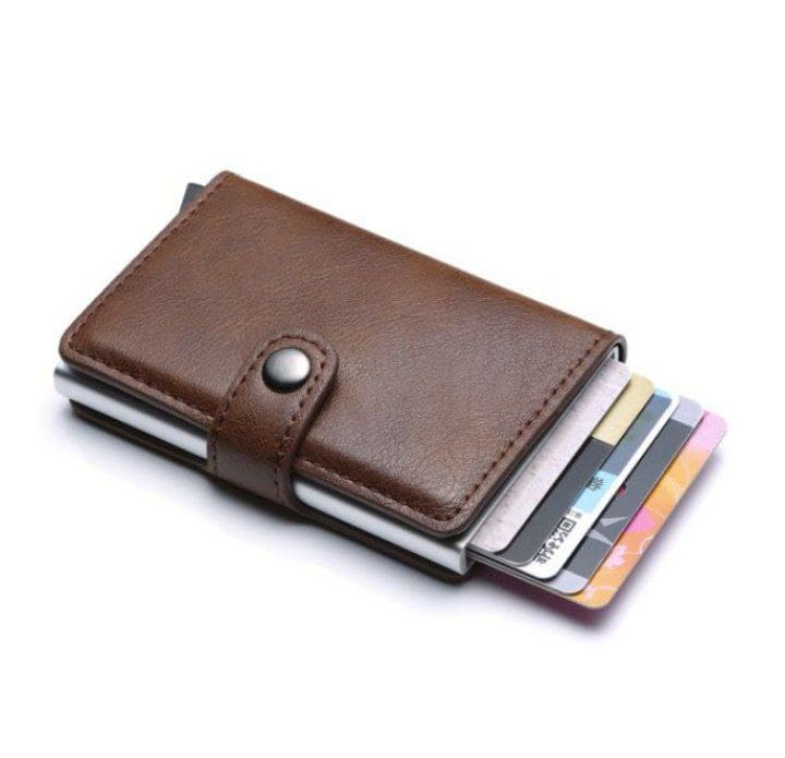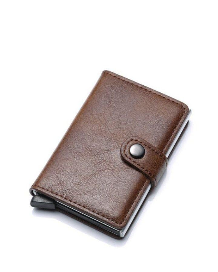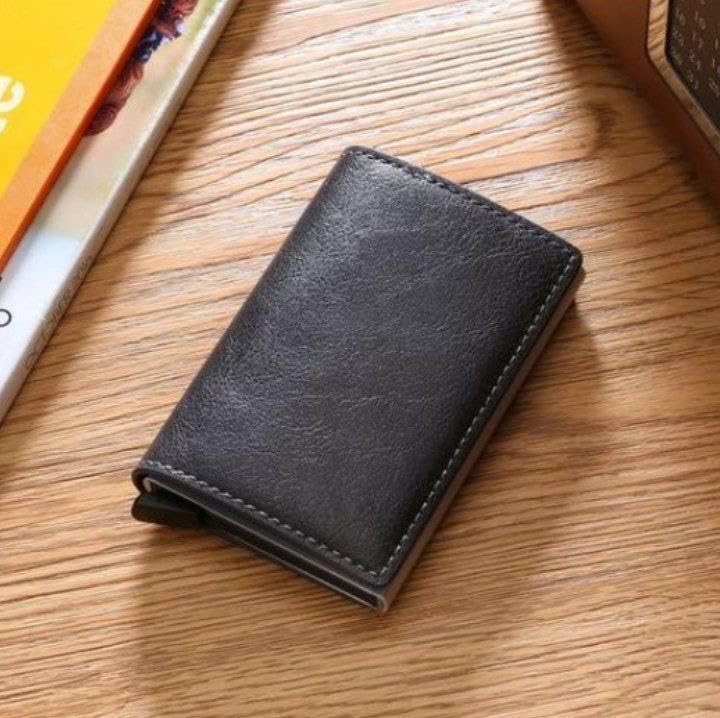 - نحيفة جدًا وجميلة: تصميم أنيق رقيق يجعل حامل البطاقات يبدو أكثر أناقة وكلاسيكية. تحتوي على جيب بهيكل معدني مع زر منبثق يمكنه حمل حوالي 5-6 بطاقات، بالإضافة إلى جيبين إضافيين في المحفظة يمكن استخدامهما للبطاقات الأخرى