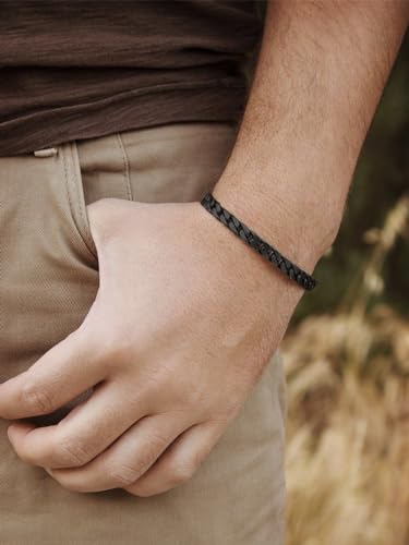 PROSTEEL - سوار سلسلة فيجارو للرجال مطلي بالذهب عيار 18 قيراط من الستانلس ستيل / اسود، مجوهرات بحلقات يد للنساء، عرض 6 ملم 19 سم/21 سم بمقاسين