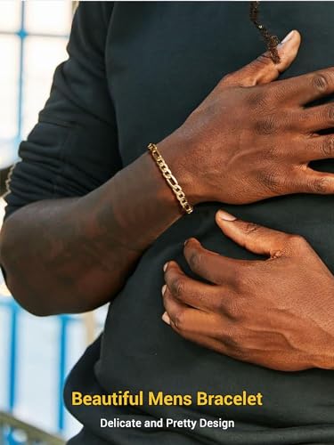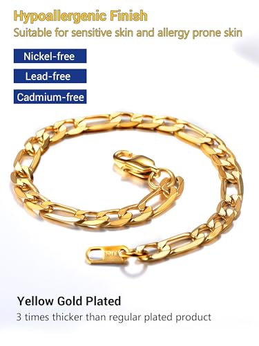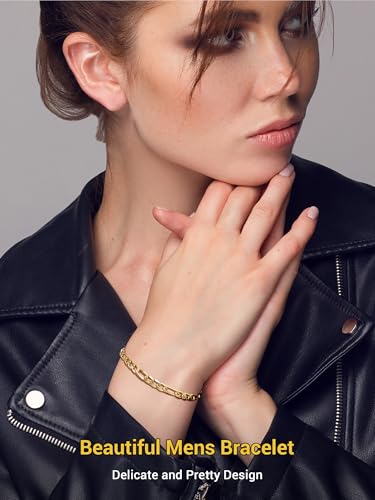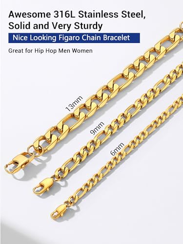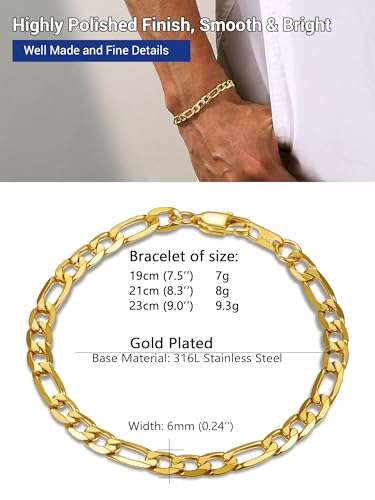 generic - سوار سلسلة فيجارو للرجال مطلي بالذهب عيار 18 قيراط من الستانلس ستيل / اسود، مجوهرات بحلقات يد للنساء، عرض 6 ملم 19 سم/21 سم بمقاسين، معدن