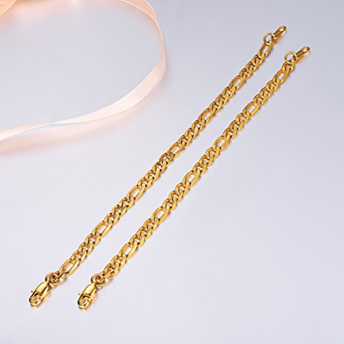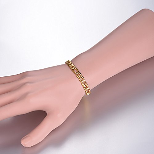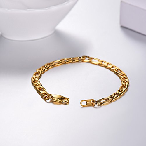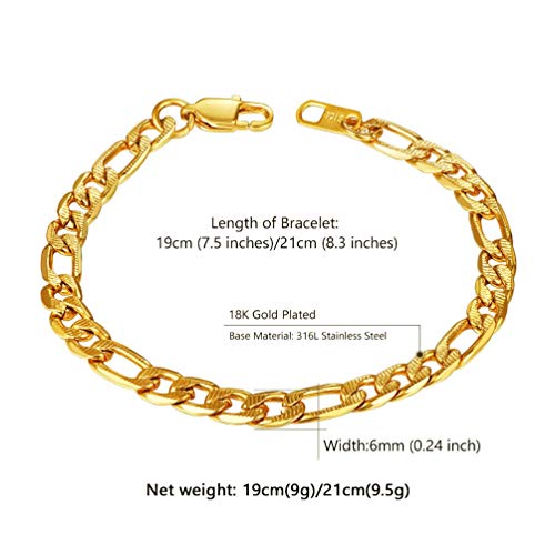 PROSTEEL - انسيال فيجارو بتصميم بحلقات متصلة من الستانلس ستيل مطلي بذهب عيار 18 قيراط للرجال وللنساء عرض 6 ملم وطول 19-21 سم ستانلس