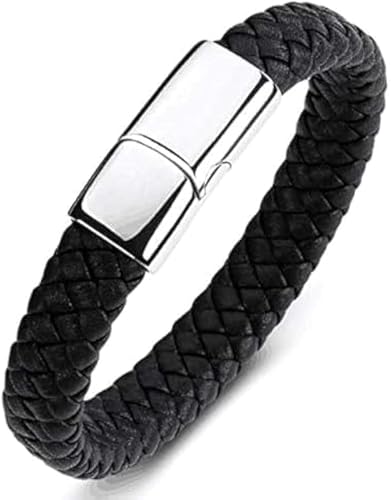 Generic - إسورة للرجال مصنوعة من الجلد الطبيعي، بلون بني وفضي وتصميم بسيط، مقاس 19 سم