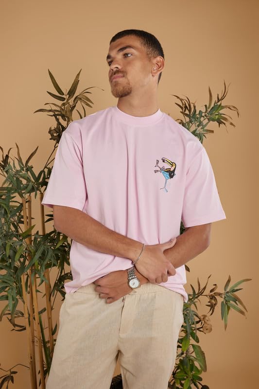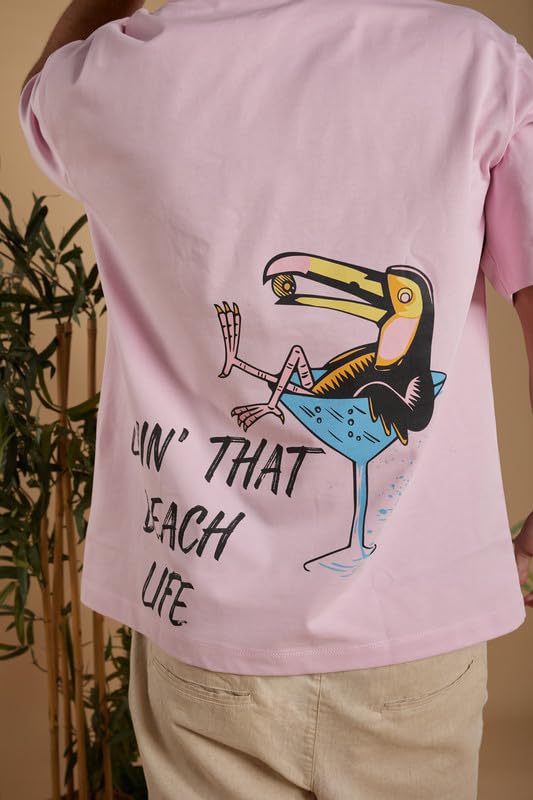 TOUCAN - تي شيرت رجالي بأكمام قصيرة مطبوع عليه Livin' That Beach Life مقاس كبير