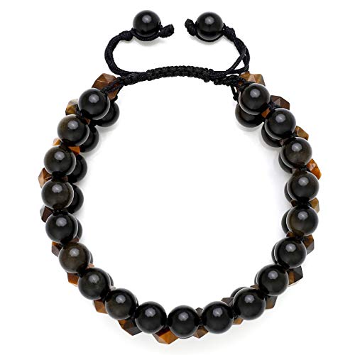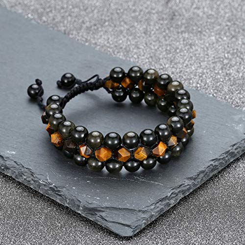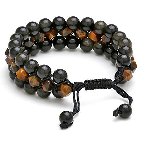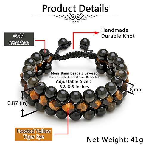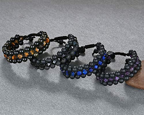 generic - سوار شاكرا من حجر عين النمر الازرق الطبيعي والاسود غير اللامع للرجال والنساء من 3 طبقات من الاحجار الكريمة العلاجية والكريستالات والصلاة، سوار ملتف قابل للتعديل