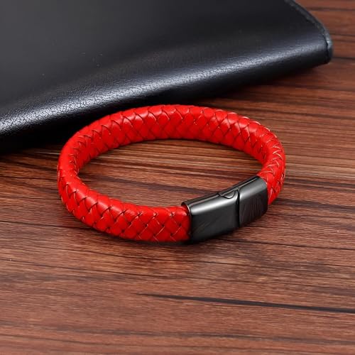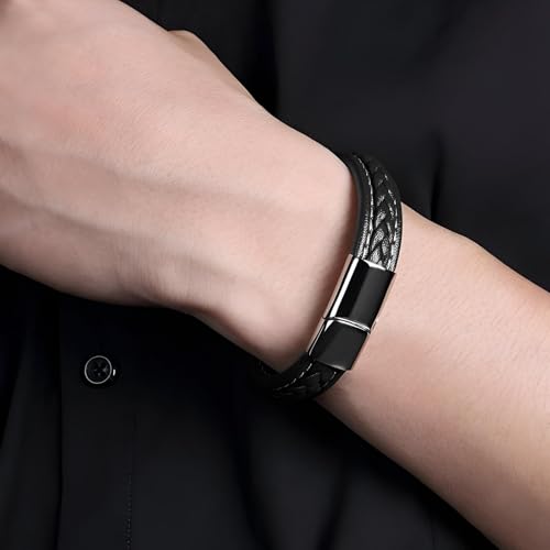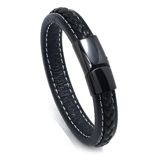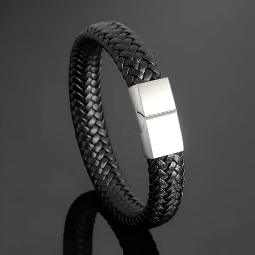 Generic - اكسسوار للرجال - سوار جلد مضفر انيق بمشبك مغناطيسي باللون الاسود، تصميم منسوج عتيق، لمسة نهائية من الستانلس ستيل قابل للتعديل 19-22 سم للاناقة اليومية
