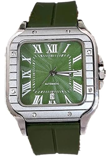 Generic - ساعة انالوج بسوار مطاطي للرجال - تصميم رياضي ومتين - ساعة مقاومة للماء للاستخدام اليومي والخارجي (سوار اخضر × مينا اخضر / اطار فضي)