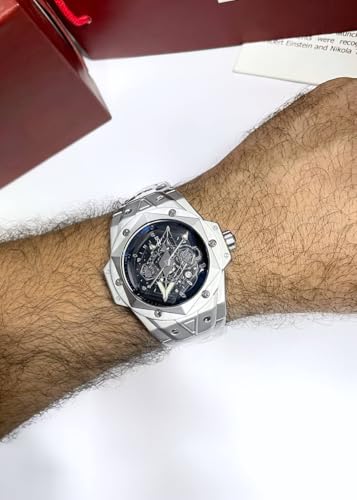 Generic - ساعة انالوج بعقارب ستانلس ستيل للرجال - ساعة كلاسيكية بسوار ستيل متين - تصميم انيق للارتداء اليومي (سوار فضي × فضي فاتام)