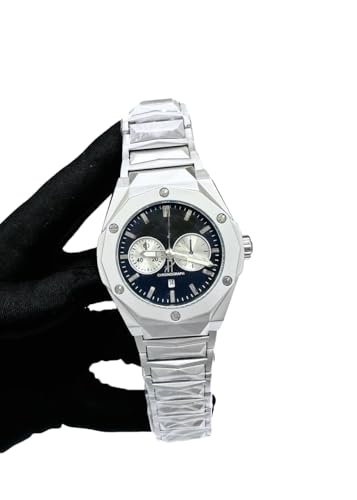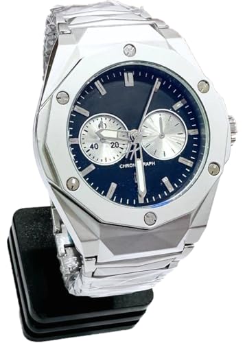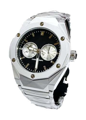 Generic - ساعة انالوج بعقارب ستانلس ستيل للرجال - ساعة انيقة - اكسسوار يومي متين ولا يتأثر بمرور الزمن (سوار فضي × اسود)