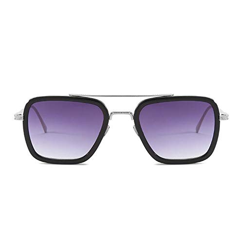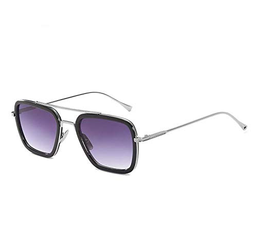 Other - اطار نظارة شمسية ترجع الى شخصية الممثل داوني "ايرون مان - توني ستارك" مربعة مصنوعة من المعدن للرجال والنساء (باطار فضي ومراة رمادية)