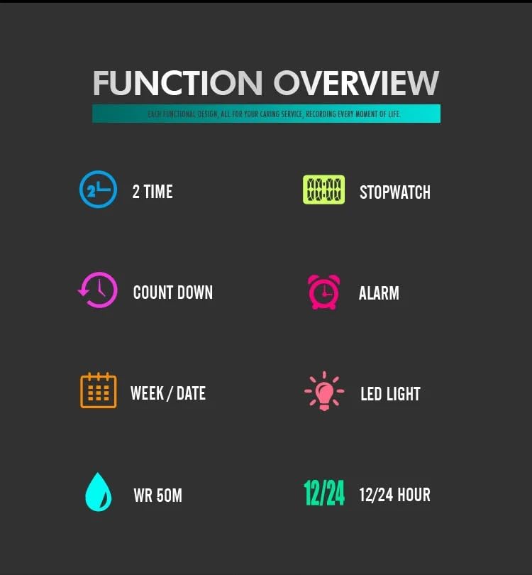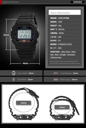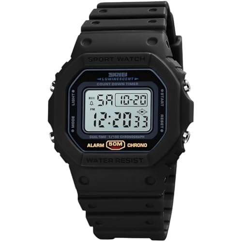 Generic - ساعه رياضية رقمية للرجال والنساء متعددة الوظائف مقاومة للماء مع منبه وتقويم كامل يعرض اليوم والوقت والتاريخ واضائه خلفيه استيك اسود مطاطي