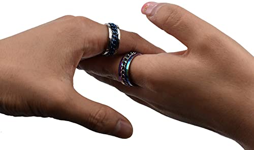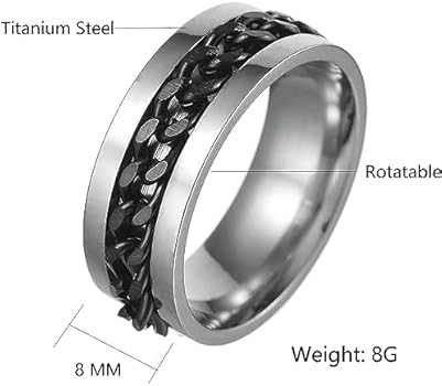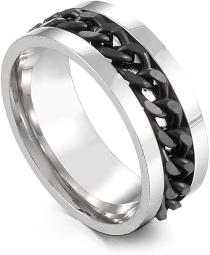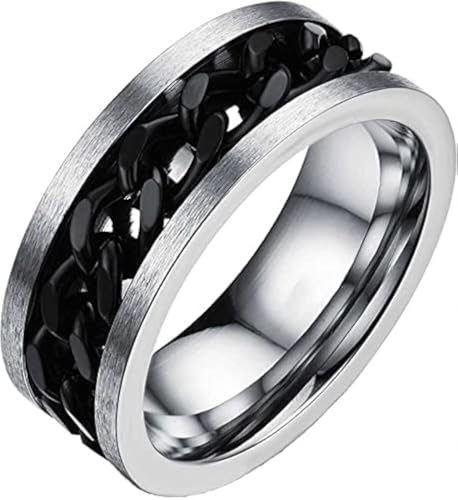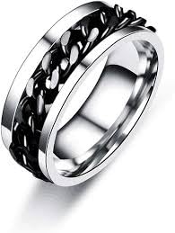 Generic - خاتم ر دوار للرجال والنساء ، فضي من الستانلس ستيل عصري الرائع لون فضي و اسود