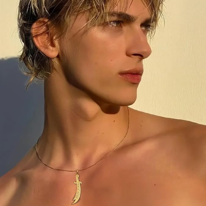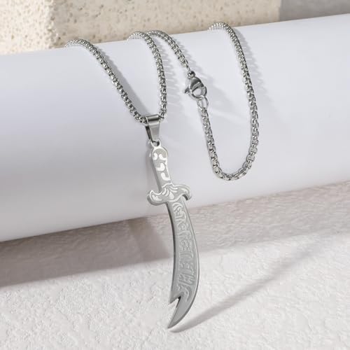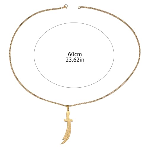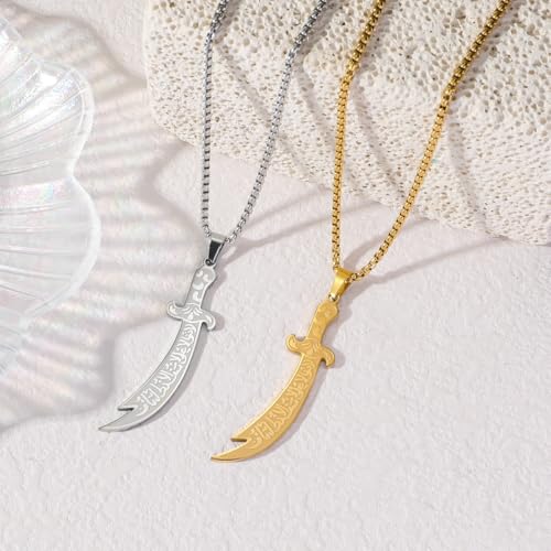 SHOWDAY - سلسلة بدلاية على شكل سيف عربي وطبعة بالخط الإسلامي للرجال من الفولاذ المقاوم للصدأ، مجوهرات ذهبية وفضية للرجال