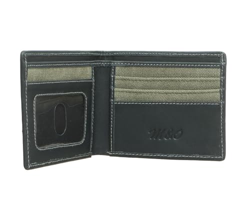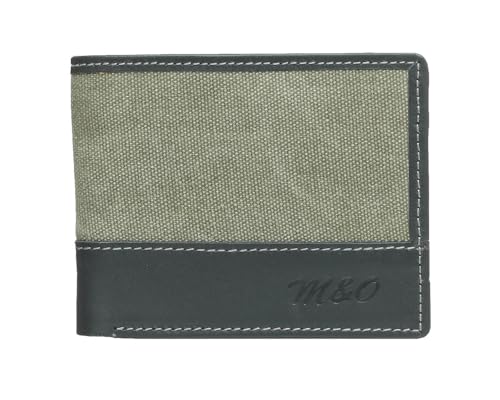 M&O - محفظة بيزلاين من القماش والجلد مع جيب قابل للطي مرفق للرجال، 4035 - زيتي