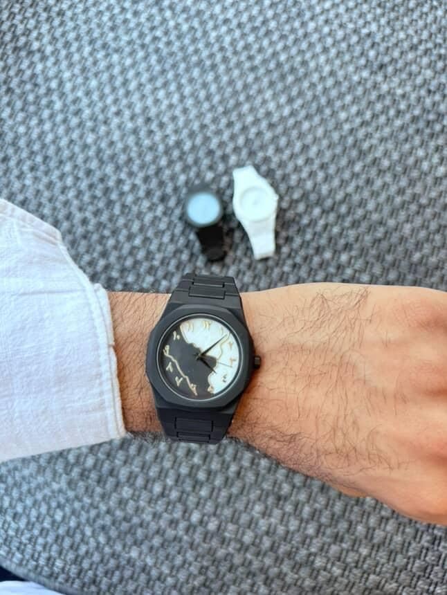 Generic - ساعة يد للرجال باللونين الاسود والذهبي | تصميم بسيط بأرقام عربية | ساعة عصرية مقاومة للماء