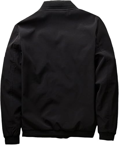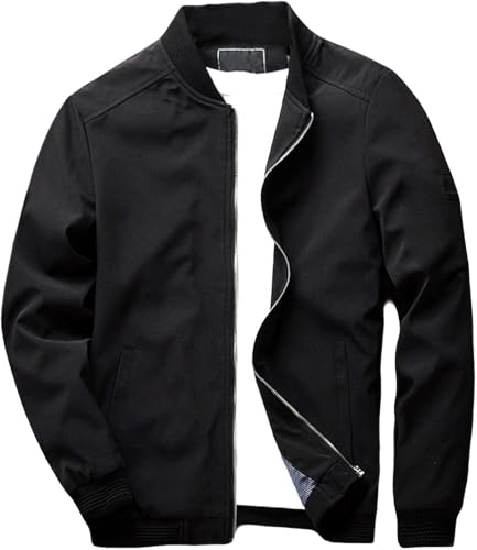 Generic - جاكيت منفوخ للرجال، اسود، قبة قائمة، سحاب امامي، اساور مضلعة، ملابس خارجية كاجوال
