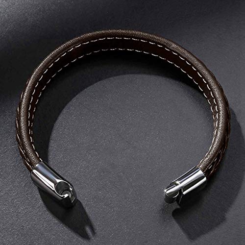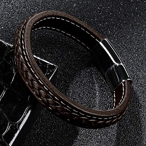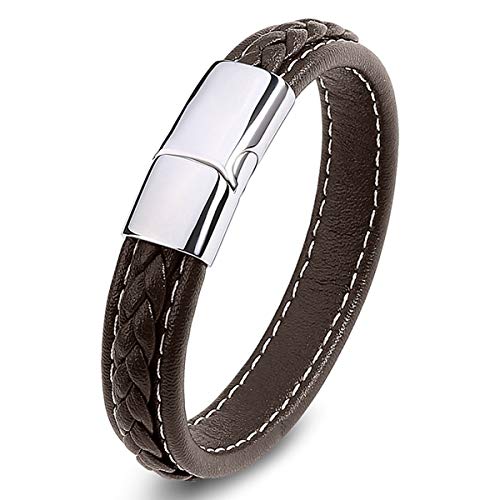 generic - سوار جلد مضفر للرجال من الستانلس ستيل بابزيم مغناطيسي، سوار معصم جلد