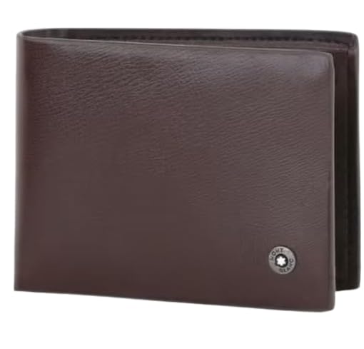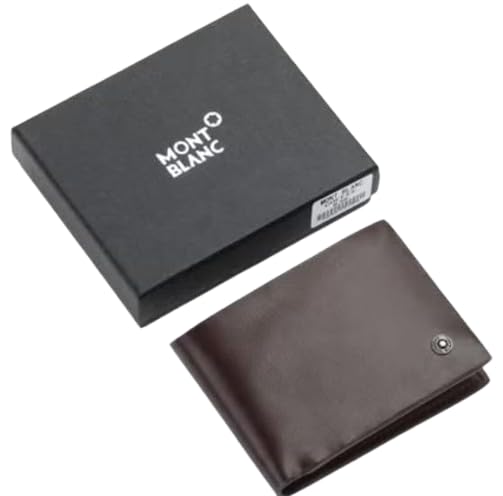 Generic - محفظة جلد بني ثنائية الطي للرجال - تصميم كلاسيكي رفيع مع شعار مستوحى من مونت بلانك | محفظة من الجلد الطبيعي للرجال مع فتحات متعددة للبطاقات