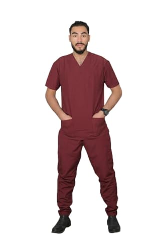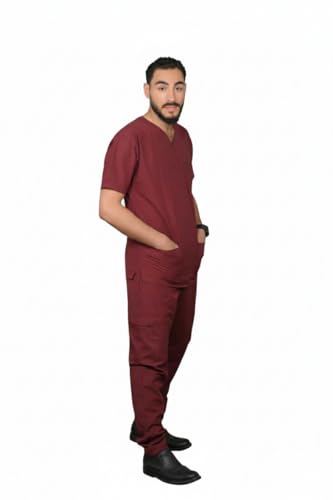 Generic - سكراب طبي للرجال، لون عنابي، طقم بدلة طبية بجيوب