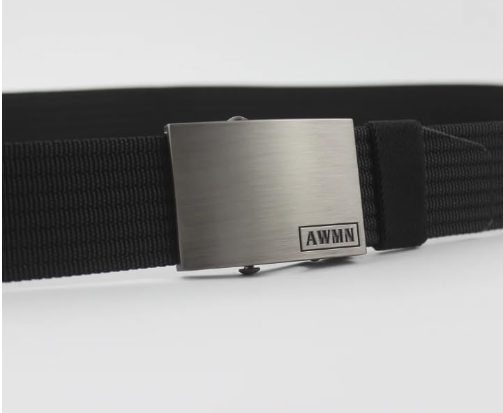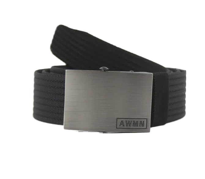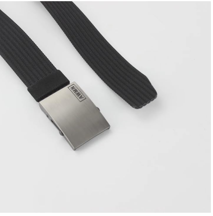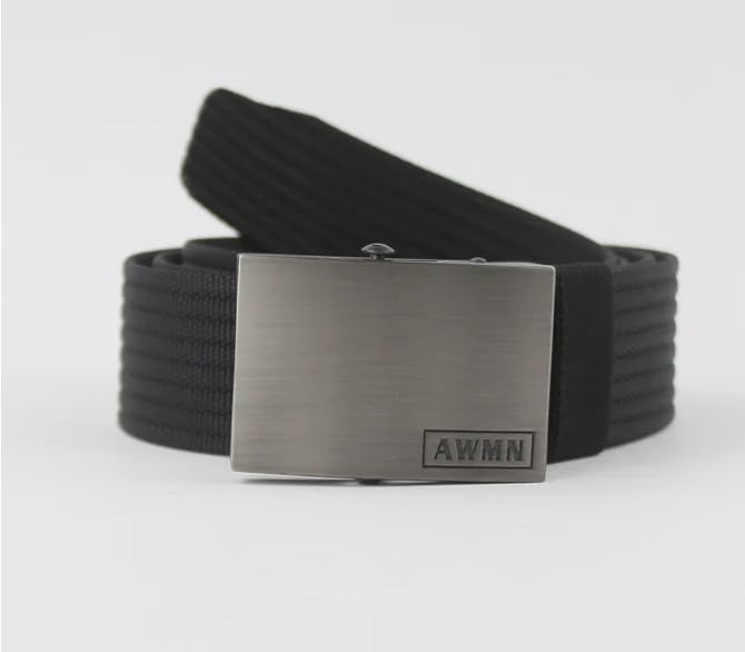 Generic - حزام كاجوال للرجال مع ابزيم معدني مصقول، قماش مضلع اسود، قابل للتعديل