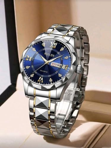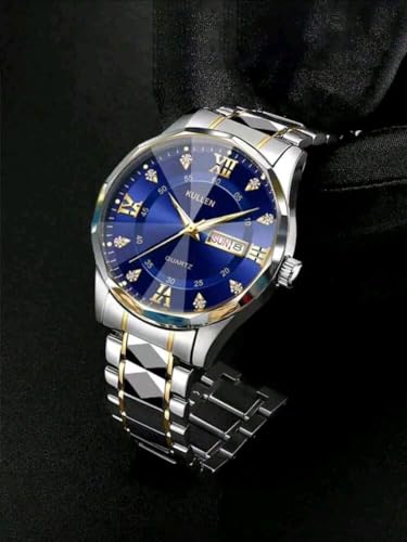 Generic - ساعة كاجوال للرجال بحركة كوارتز مع تقويم وسوار من فولاذ مقاوم للصدأ