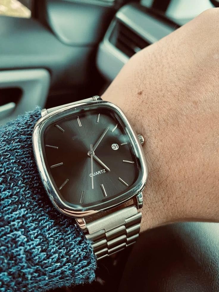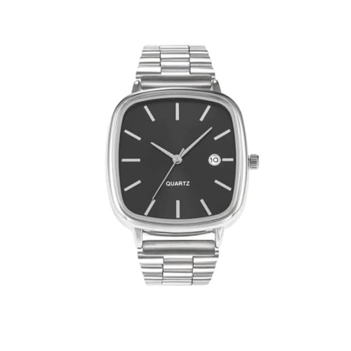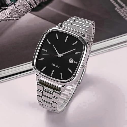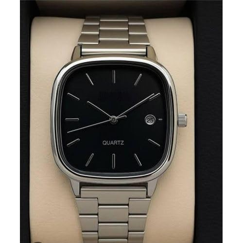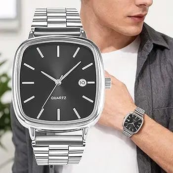 Generic - ساعة رجالية كلاسيكية تناظرية مقاومة للماء مع سوار من الستانلس ستيل، أسود وفضي