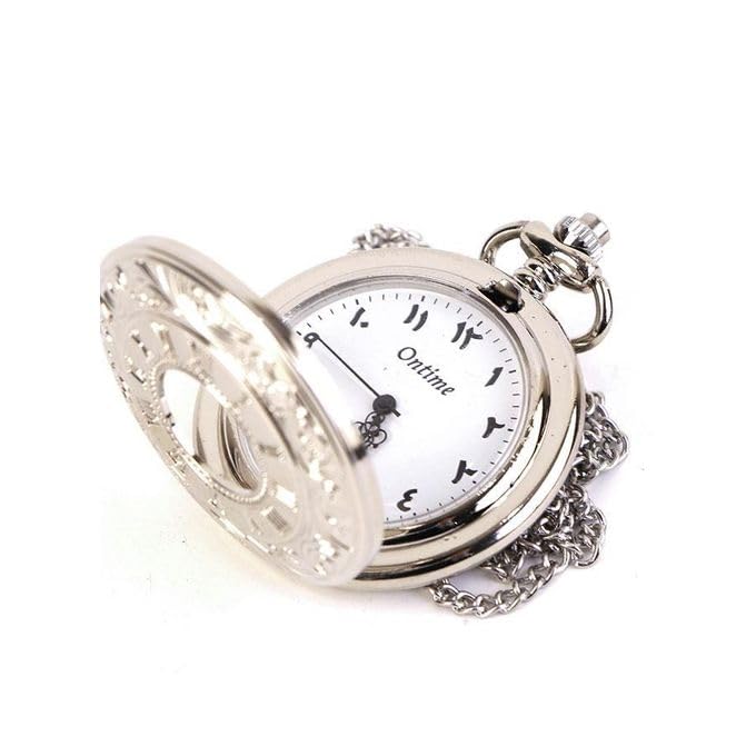 Generic - ساعه جيب كلاسيك رجالي - انالوج- كوارتز- باند استانلس ستيل فضي - مينا بيضاء , geb05