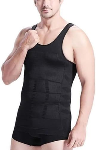 Generic - بلوزة ضغط بدون اكمام للرجال، سترة تخسيس لتشكيل الجسم، اسود xxxl