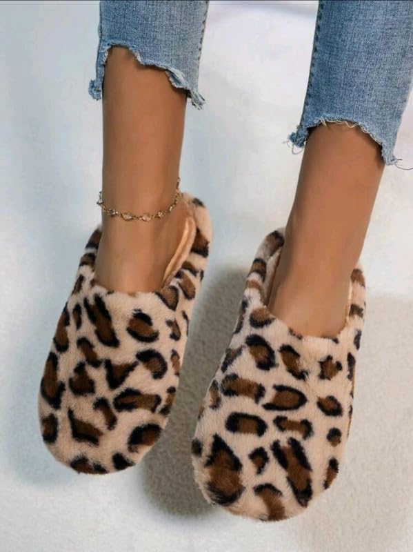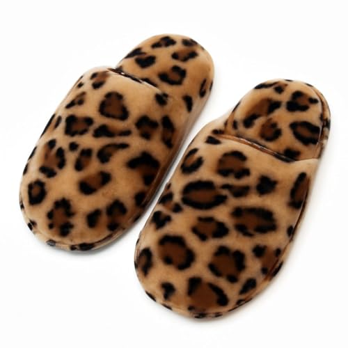 Generic - شبشب بني عصري للرجال، شبشب لغرفة النوم بنمط جلد الفهد