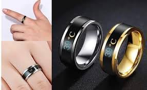 Generic - خاتم رجالي عصري من الفولاذ المقاوم للصدأ، أسود، مقاس متوسط، قياسدرجة الحرارة، مناسب للاستخدام اليومي والمناسبات الرسمية مقاس 11
