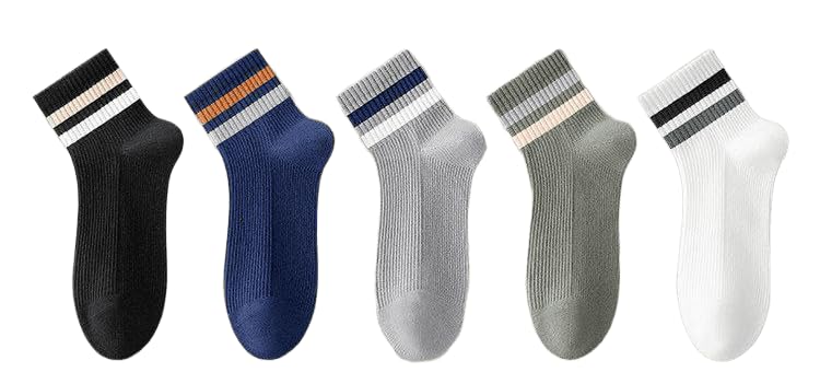 Generic - جوارب رجالية قصيرة بتصميم عصري مخطط، مجموعة من 6 أزواج، ألوان متعددة